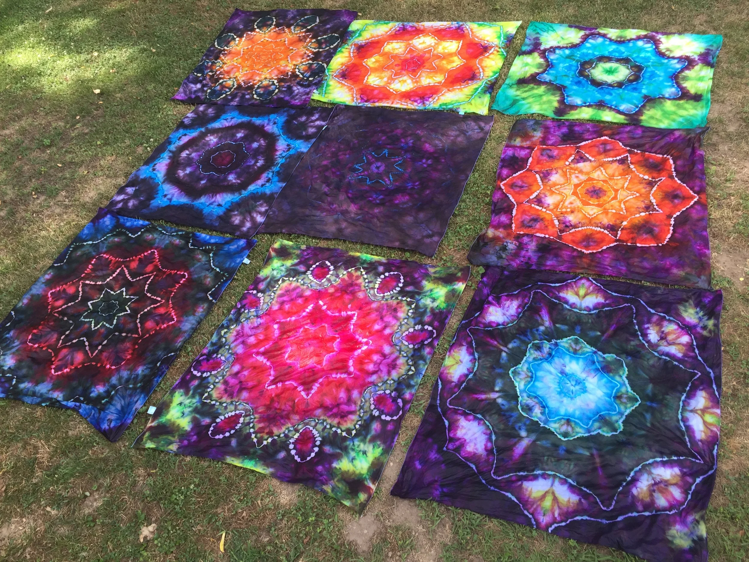 Fabric Dyeing with ice is MAGIC! In this class we will learn how to fold & bind mandala designs into a 30 × 48 inch tapestry. We will dye the fabric with an ice melt technique that creates an incredible watercolor wash of pigments. There will be a short lecture to share the techniques and supplies needed to take this craft out of the classroom and into practice in your own space. All supplies provided!